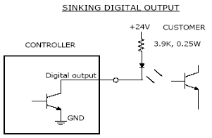 As shipped from the factory, all digital outputs are normally configured as "sinking."