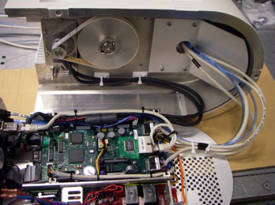 Remove the 1st Stage Belt by sliding it off the large pulley and then the J1 Motor flanged pulley. |